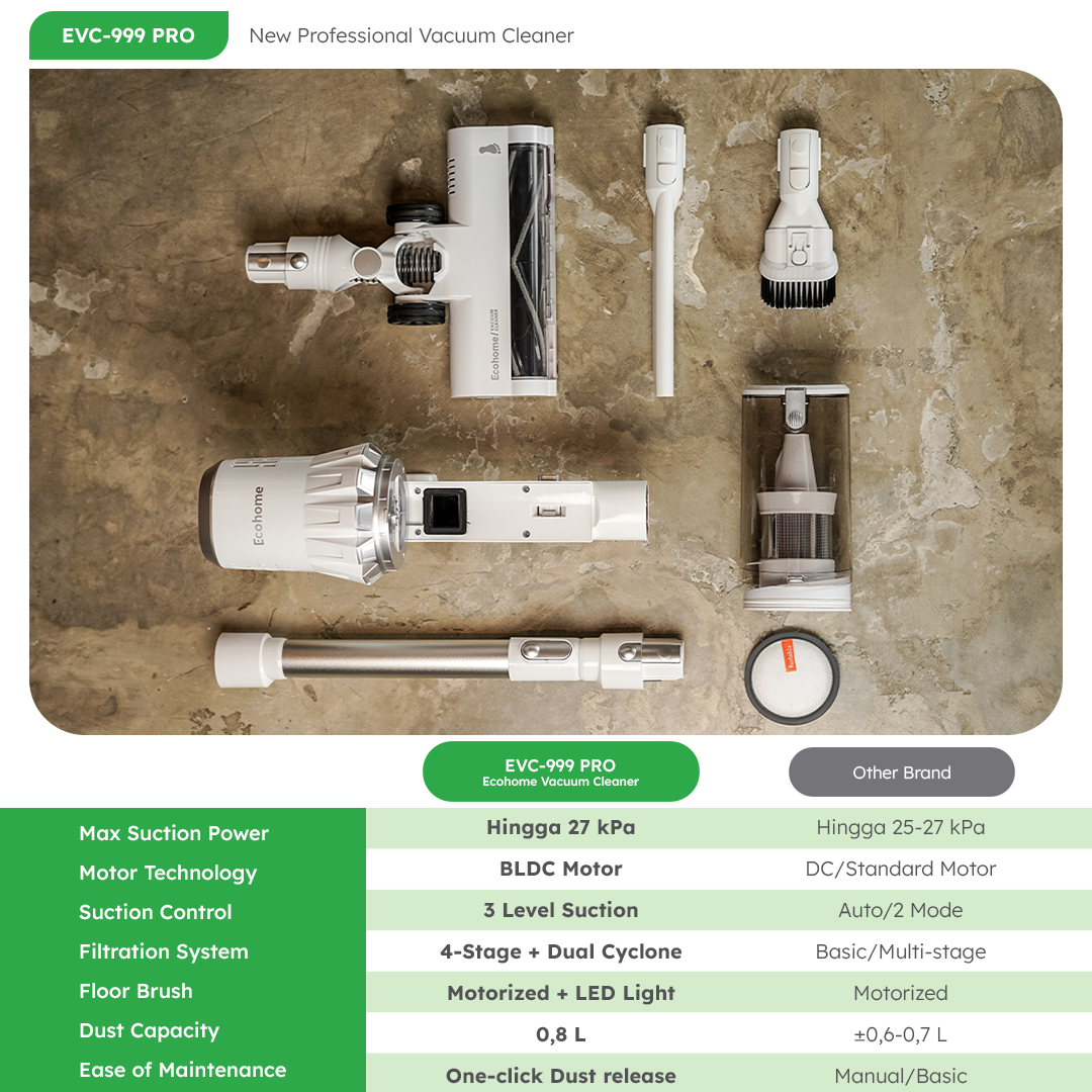 Dengan Ecohome Vacuum Cleaner EVC-999Pro, rutinitas membersihkan rumah menjadi lebih praktis, hemat waktu, dan memberikan hasil yang maksimal. Cocok untuk berbagai jenis lantai dan perabotan, vacuum cleaner ini akan menjadi asisten handal dalam menjaga kebersihan setiap hari.